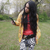 Adorable jacket with the cutest print! Lined with red, and two pockets. Everyone is going to ask you where you got it!