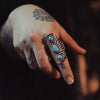 This baby is just waiting to be slid on a finger and party. Long, oversized, and fully adjustable. Beautiful turquoise and silver details.