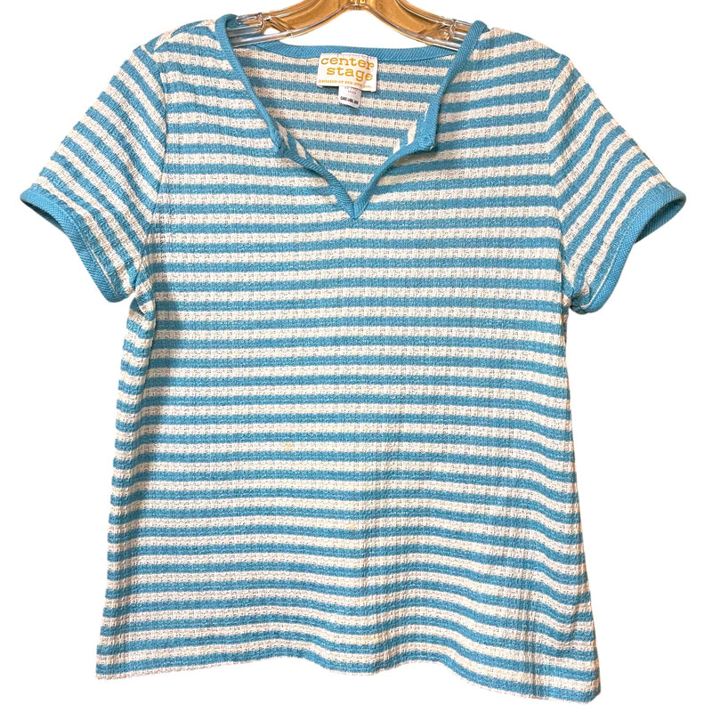 Shop NowVintage Center Stage Striped Knit Top Women’s L (Fits S/M) Blue & White 70s–80s