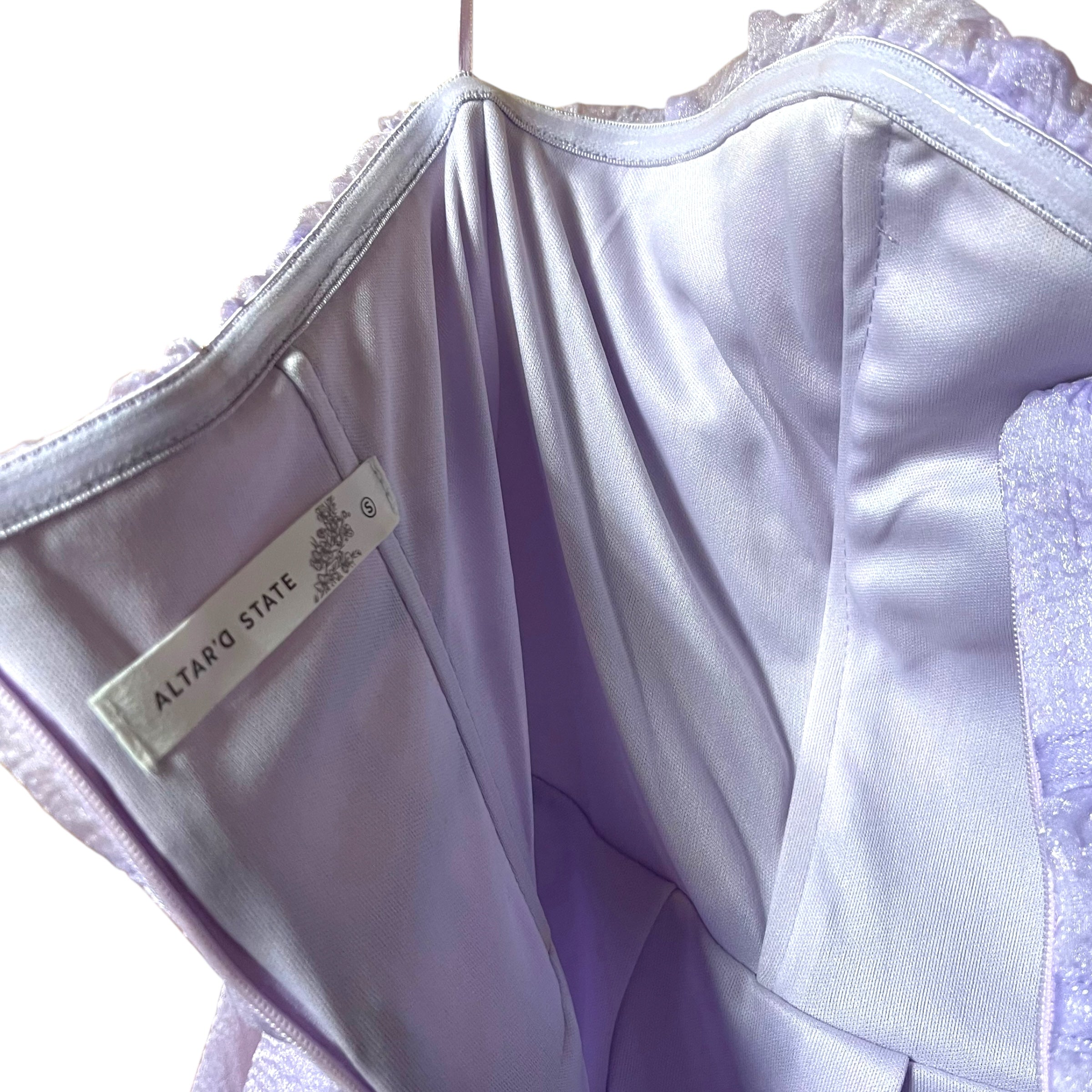 Altar’d State Strapless Lavender Party Dress – Shimmery Ruffle Bodice – Size Small