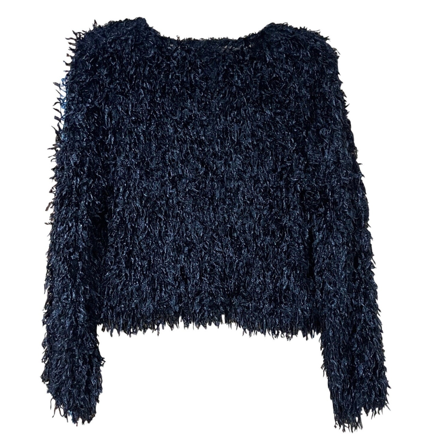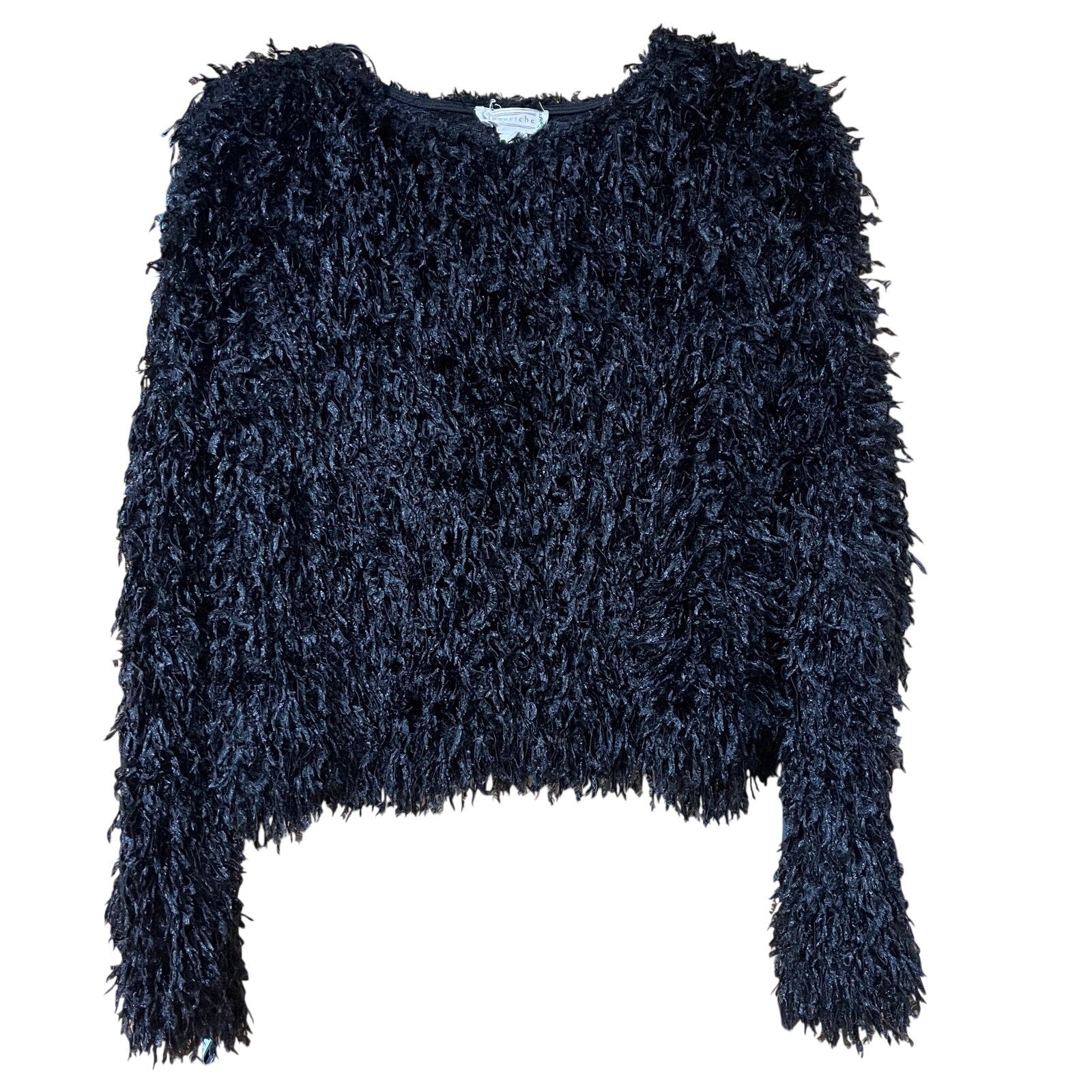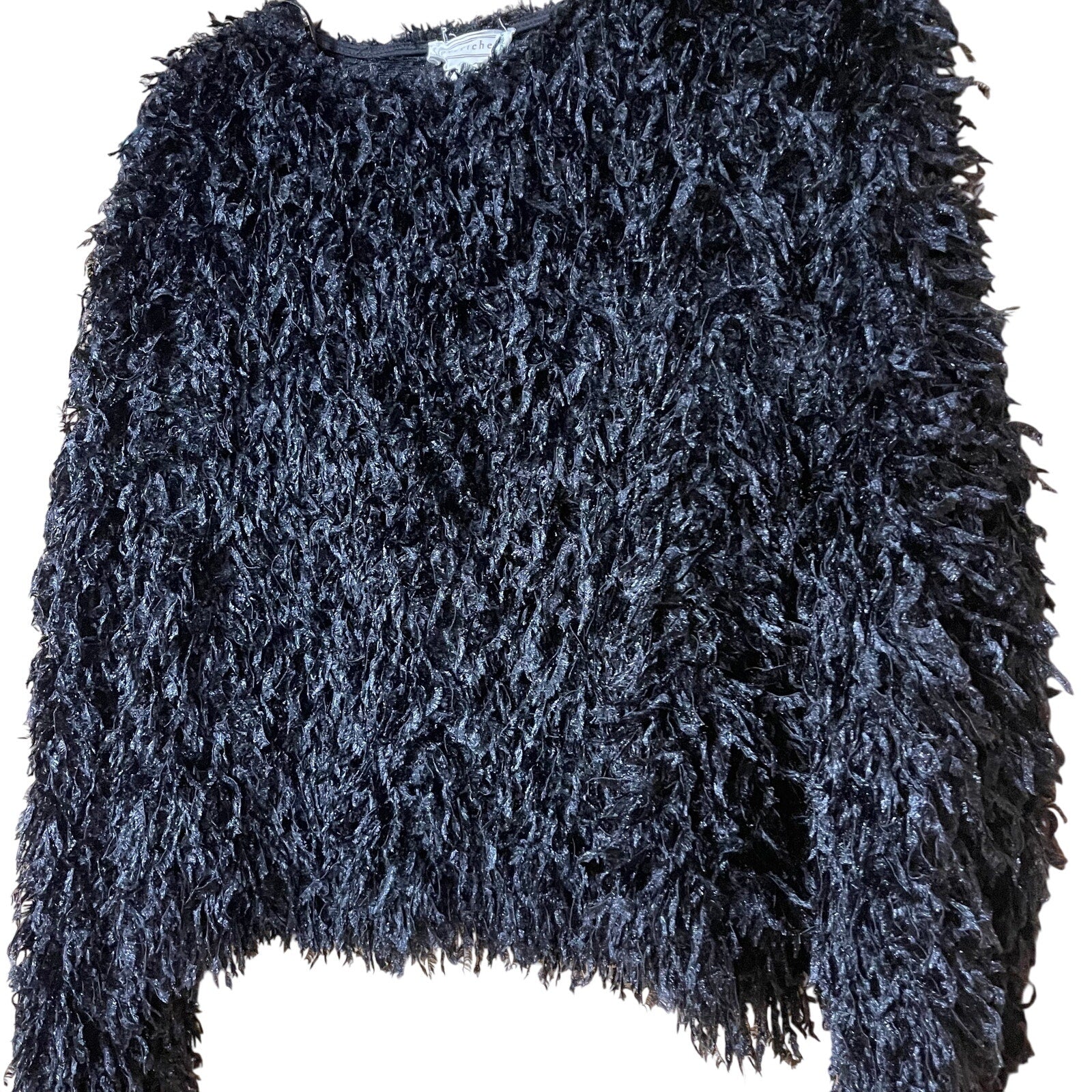 🖤 Black Shaggy Textured Cropped Sweater – Size S