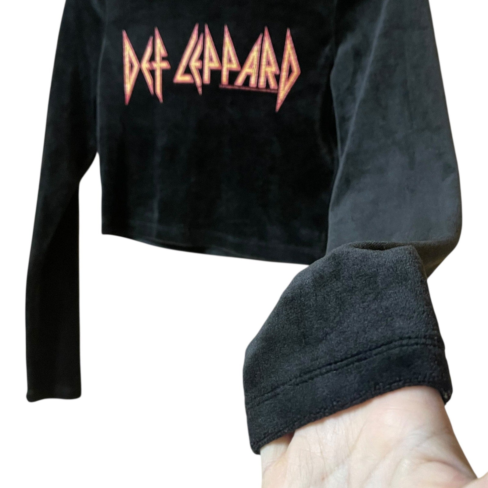 Load image into Gallery viewer, Def Leppard Cropped Long Sleeve Top Women’s Small Black Velvet Band Tee Graphic