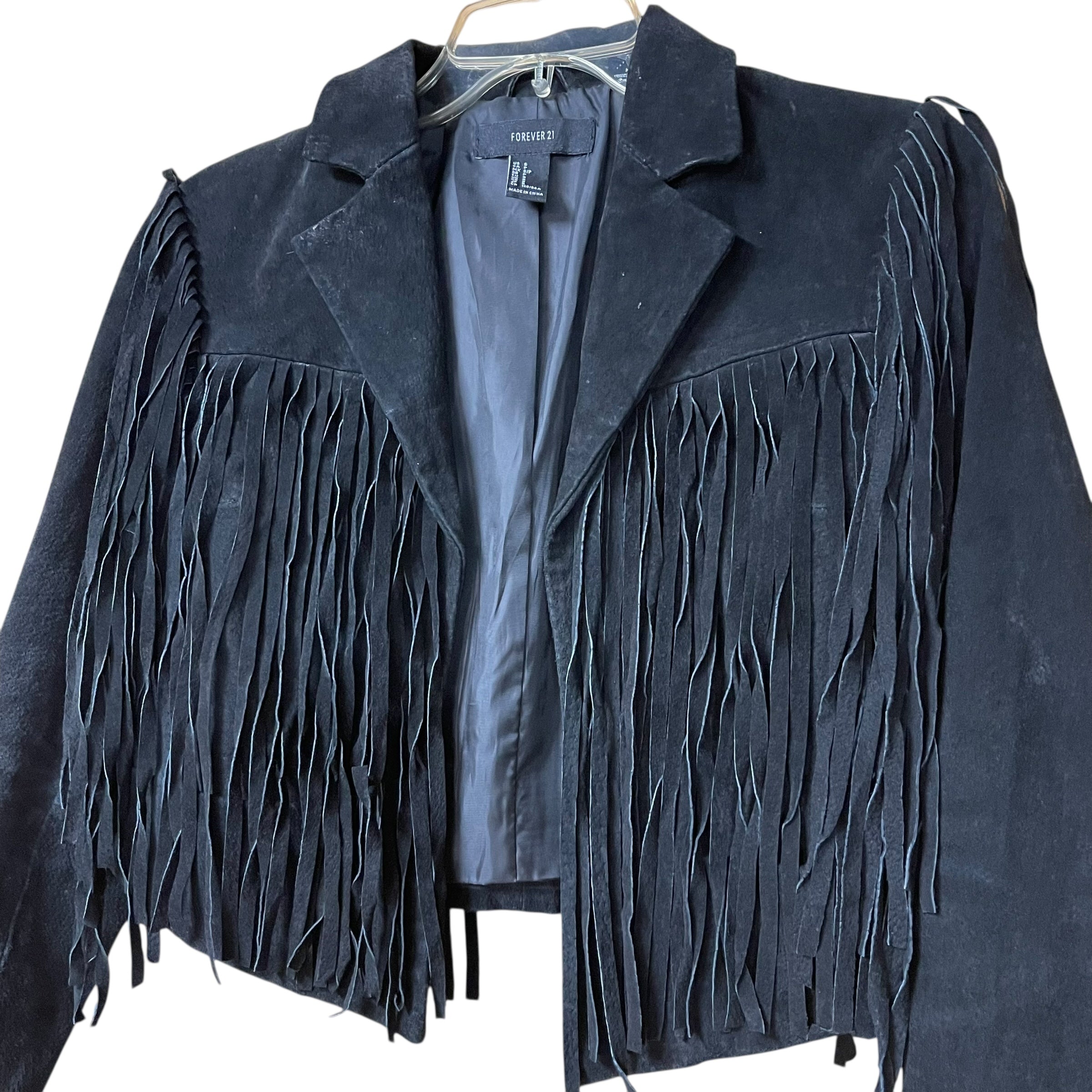 Forever 21 Black Suede Fringe Jacket – Size Small