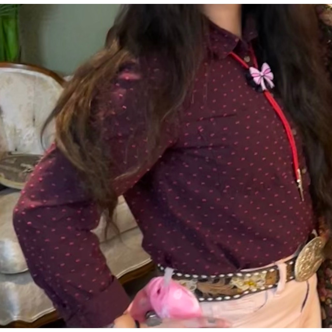 Textured Button Shirt – Women’s M – Plum w/ Pink Swiss Dot