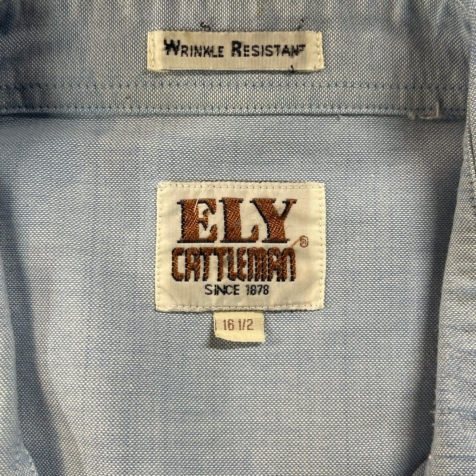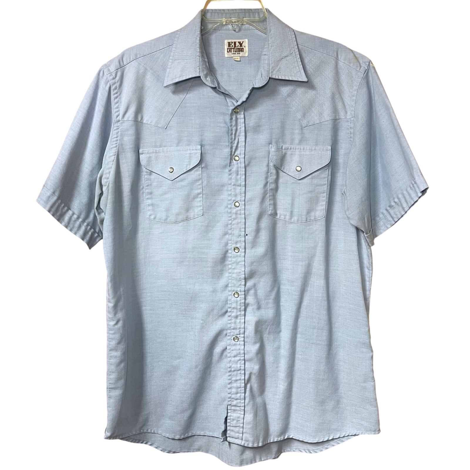 Vintage Ely Cattleman Western Shirt 16.5 | Distressed Light Blue Snap Shirt XL