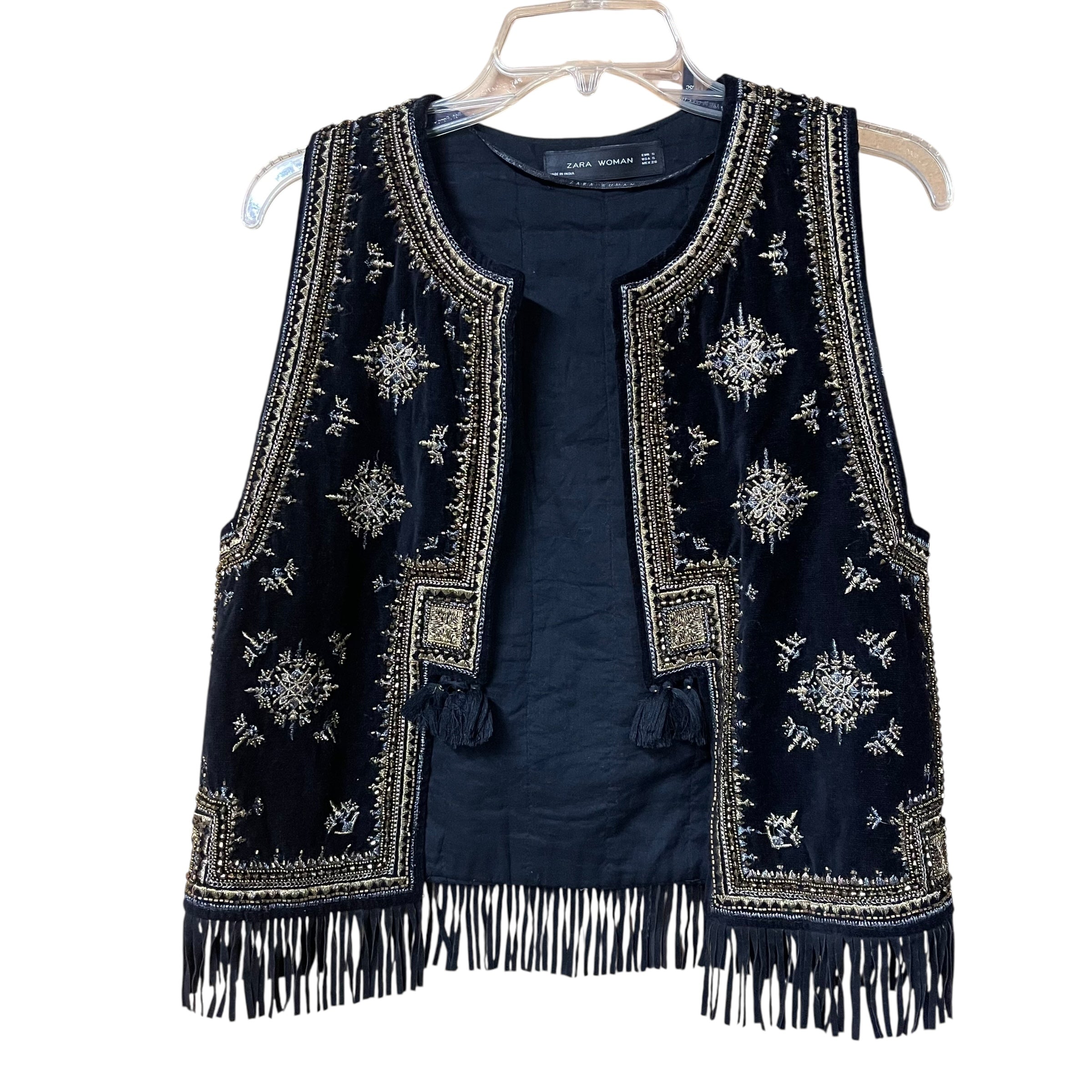 SOLD - Zara Woman Velvet Embroidered Fringe Vest – Small